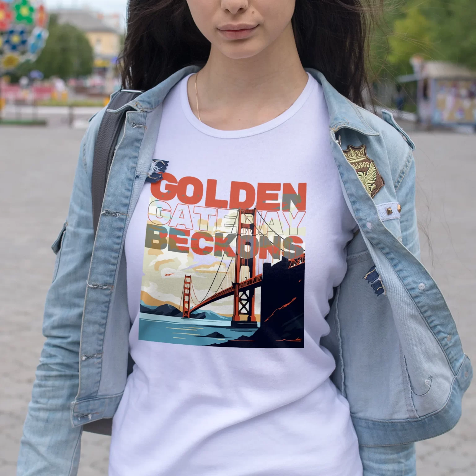 The design features a beautifully illustrated depiction of the iconic Bridge of San Francisco. The main focus is on the bridge itself, which is showcased in a vibrant and eye-catching manner.